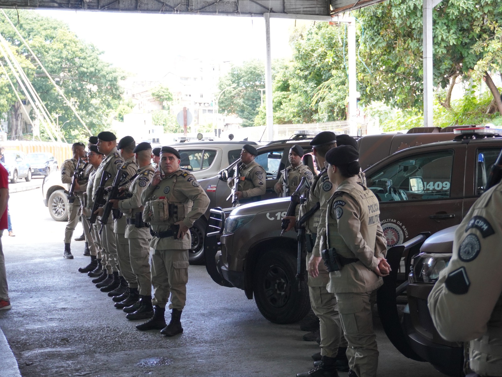 Ao todo,serão 50 guarnições espalhadas por Salvador, fazendo a intensificação do policiamento para que o folião chegue aos circuitos e retorne com segurança para casa. Participaram os policiais do Batalhão Gêmeos, Batalhão Apolo e o batalhões de policiamento tático, incluindo as Rondesps da capital e da Região Metropolitana de Salvador (RMS), além do reforço de guarnições da Rondesp Leste e Rondesp Chapada. O trabalho segue até a terça-feira de Carnaval”, explicou o coordenador da Operação Folia e Paz, tenente-coronel Assemany.